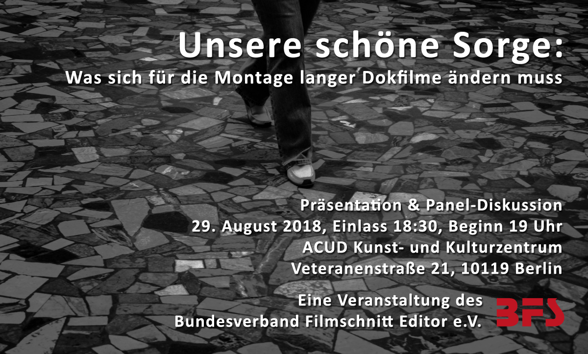 Eine engagierte Arbeitsgruppe aus Filmeditorinnen unseres Verbandes (Friederike Anders, Beatrice Babin, Anne Fabini, Antje Tina Lass, Annette Muff & Catrin Vogt) hat ein Positionspapier erarbeitet, in welchem die Leistungen von Dokumentarfilm-Editoren dargestellt werden, und die flächendeckenden Probleme bei der Montage langer Dokumentarfilme detailliert benannt werden. (…) Es herrscht z.B. eine enorme Diskrepanz zwischen der Anzahl der Arbeitswochen, die für einen üblichen langen Dokumentarfilm geplant & budgetiert werden, und der statistischen Realität, wie lange diese Filme dann im Schneideraum verbringen – gerade auch jene Filme, die hinterher eine besondere Qualität aufweisen, und Preise gewinnen.