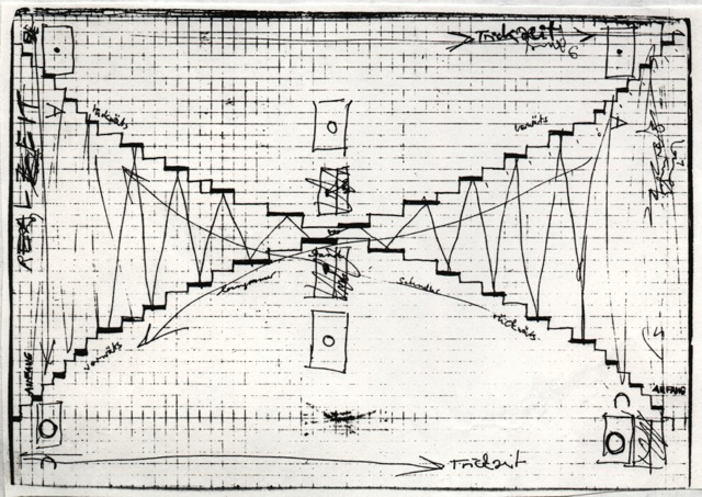 Während ein Teil der Gruppe zusammen mit Folkmar Hein und seinem synclavier mehr an der akustischen Seite der Versuchsanordnung arbeiteten, arbeiteten die Anderen mit Martin Potthoff nach einem Notationssystem der ungarischen Trickfilmerin Agnes Hay. Es ermöglichte das visuelle Eintragen von zeitlichen Bewegungen zwischen den Achsen Realzeit/ Rohmaterial und Effektzeit / Schnitt .